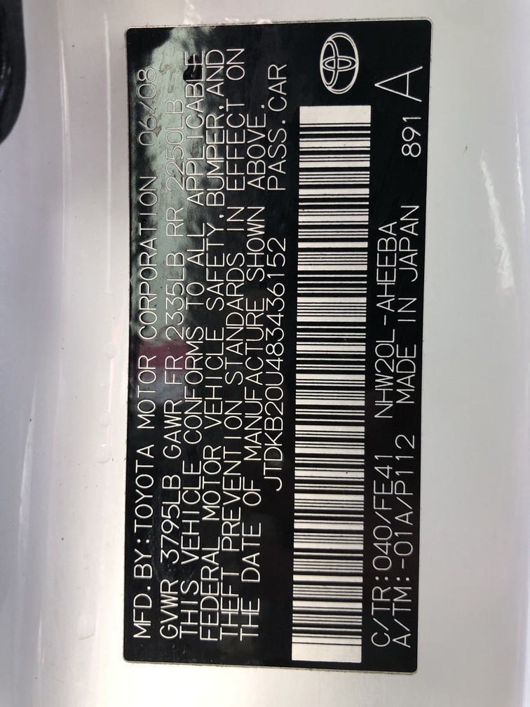 VIN JTDKB20U483436152