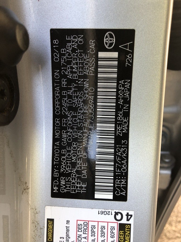 | VIN | JTNKARJE7JJ569410 |